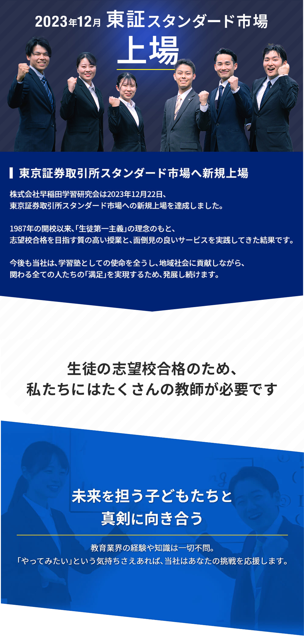 業界トップクラスの高収入を実現する当社で、一人前の塾教師へと成長することができます。